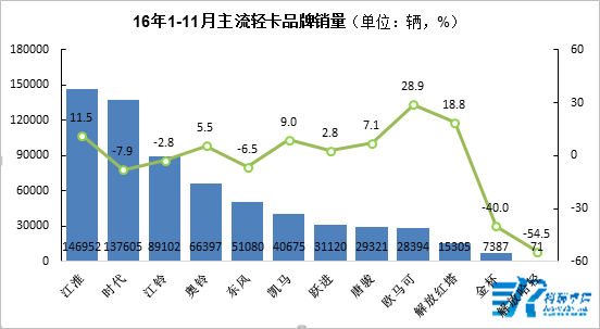 2016年1-11月主流輕卡品牌銷(xiāo)量監(jiān)測(cè)