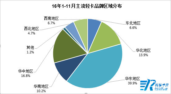 根據(jù)科瑞卓信調(diào)研顯示,2016年1-11月主流輕卡品牌共銷(xiāo)售64.3萬(wàn)輛輕卡,同比增長(zhǎng)1.68%,輕卡市場(chǎng)表現(xiàn)略有回暖。
