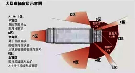 1、從貨車盲區(qū)圖中,我們可以看出貨車的盲區(qū)非常多,而其中最危險的是車輛的右側。由于大車結構復雜,長度較長,前輪可以繞過道路的某一物體時,后輪卻繞不過去。因此遠離司機視線的右側盲區(qū),就是遠離鬼門關。